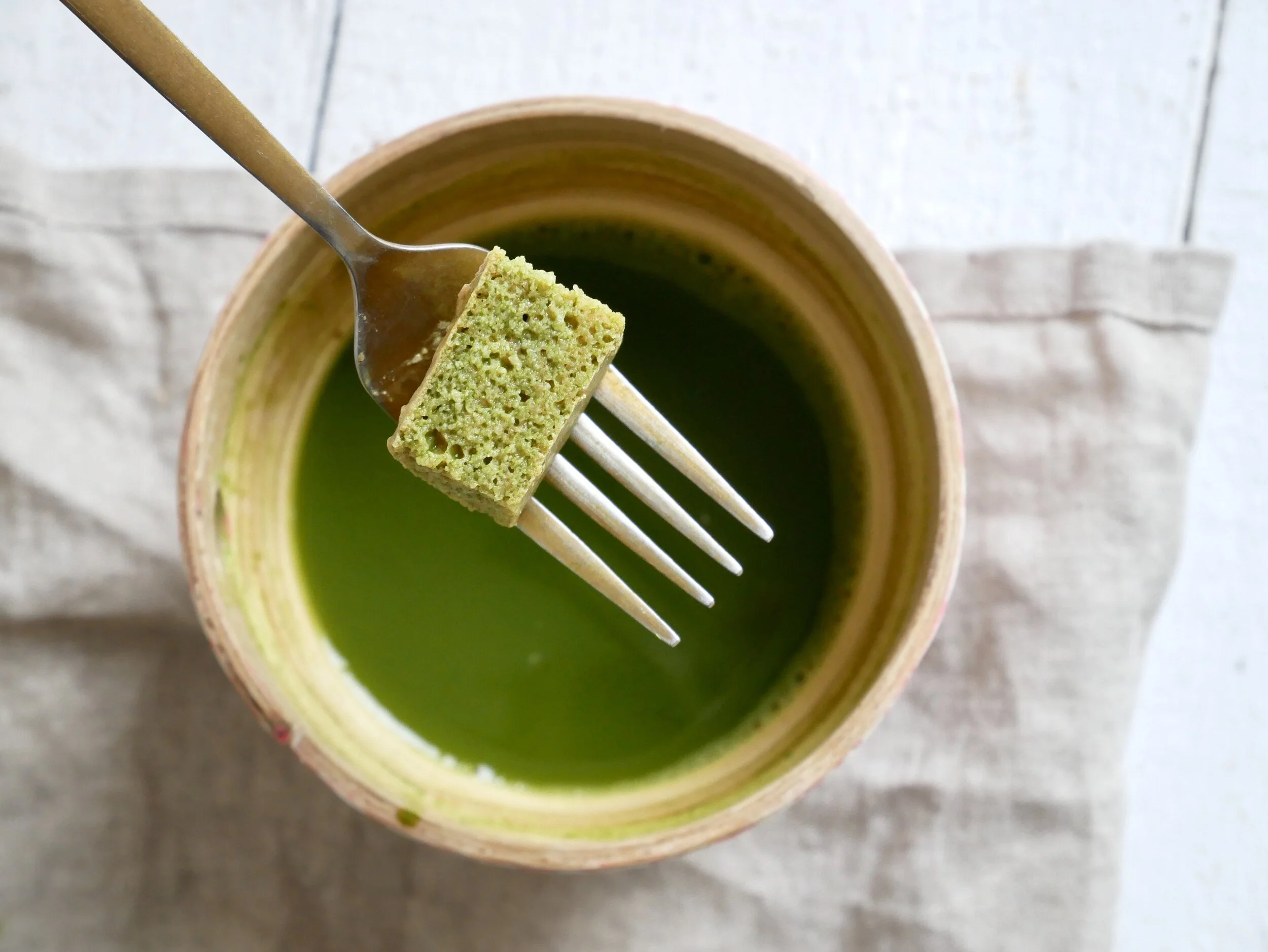 Then fold in the cashew cream and place the mix into the fridge until you’re ready to assemble. Also cook up your matcha and let it cool down as well.