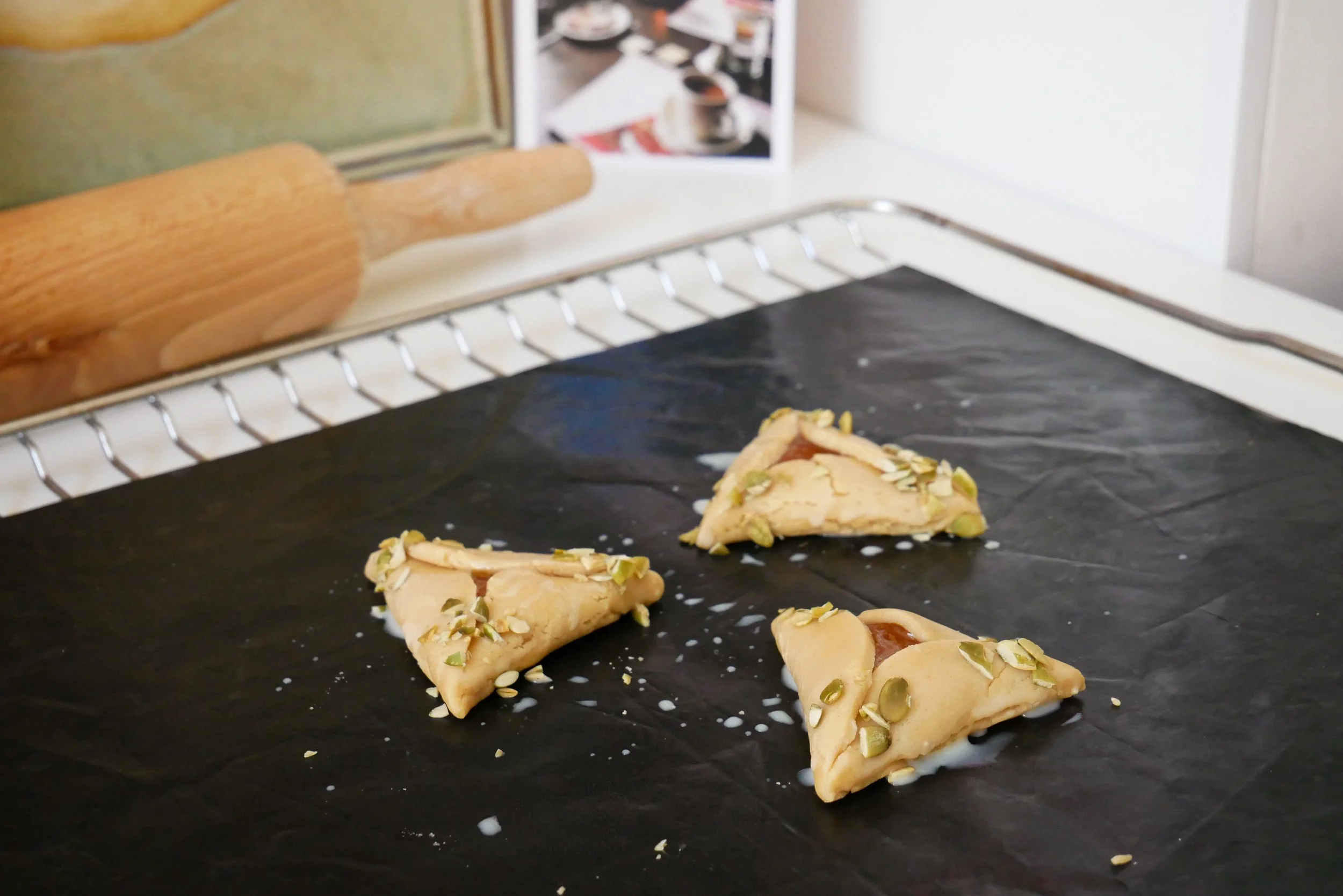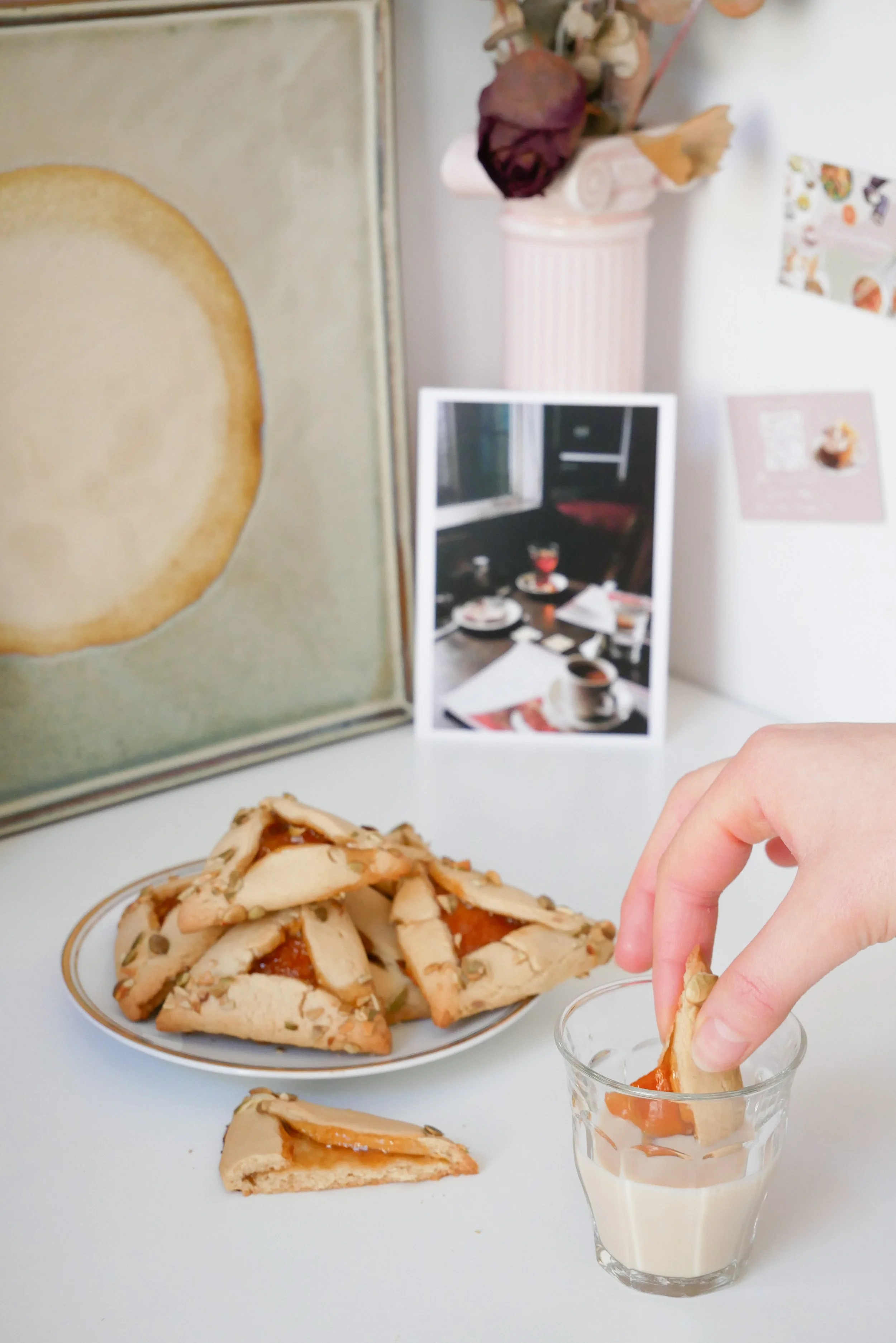 Diese Kekse habe ich vor einigen Wochen für die Spendenaktion “Hamantashen for Ukraine” der Berliner Bäckerei Fine Bagels gebacken. Hamantaschen sind Teil jüdischen Festtagsgebäcks, typischerweise dreieckig geformt und traditionell mit einer süßen Mohnfüllung oder Marmelade gefüllt.