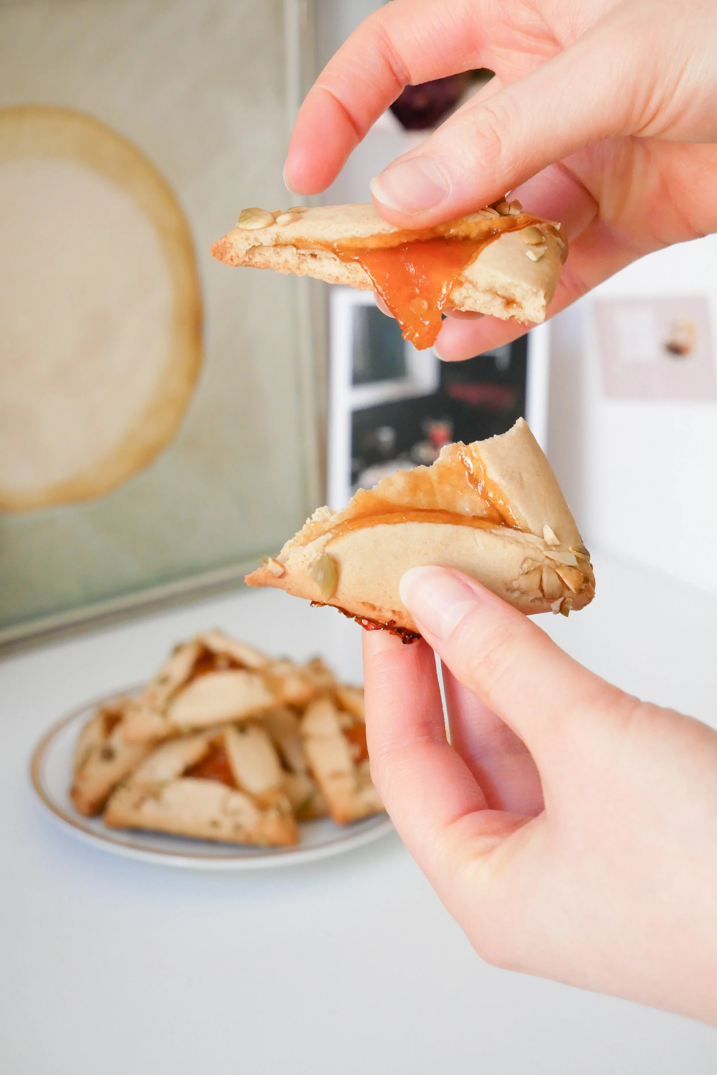 "Hamantaschen" inspirierte Kekse mit Aprikosenmarmelade